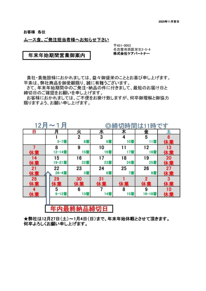 年末年始休業前のご注文に関して
